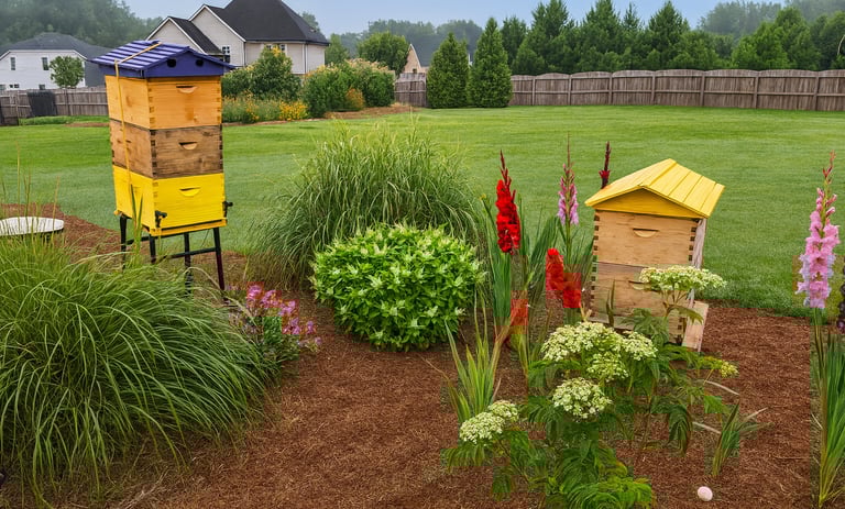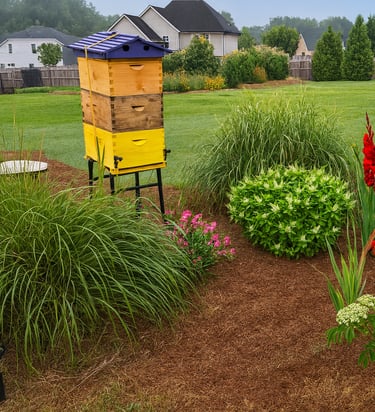 Our small but mighty apiary is home to two thriving hives, each carefully placed and lovingly tended in the heart of our homestead. Designed to support pollination, sustainability, and the beauty of backyard biodiversity, this space is a living testament to our commitment to nature and stewardship. As we prepare to welcome more hives, our apiary continues to grow — not just in numbers, but in impact. From the gentle hum of busy bees to the golden reward of fresh honey, every moment here reflects the harmony between hard work and creation. Whether you're curious about beekeeping or simply drawn to the wonder of pollinators, our apiary is a place of learning, life, and sweet inspiration.